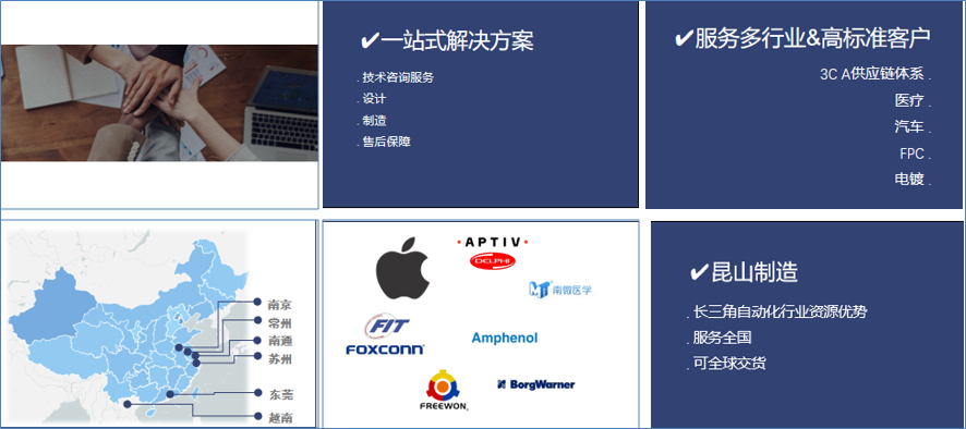 主營高標準非標定制設(shè)備,3C、電鍍、沖壓、FPC、成型等多行業(yè)上下料設(shè)備,視覺類軟硬件設(shè)備,并提供相關(guān)技術(shù)支持和整套解決方案。 自有視覺團隊提供非標設(shè)備常規(guī)視覺服務(wù)。與業(yè)界頂尖視覺公司長期合作,一站式提供外觀檢AI深度學習服務(wù)。